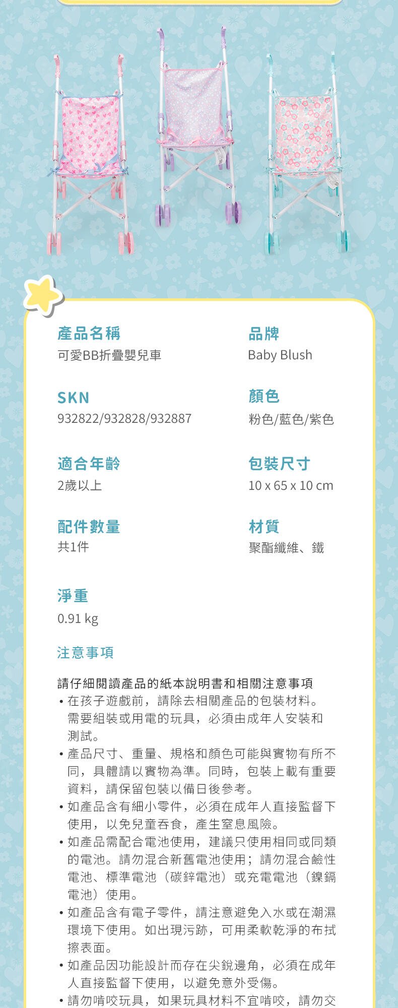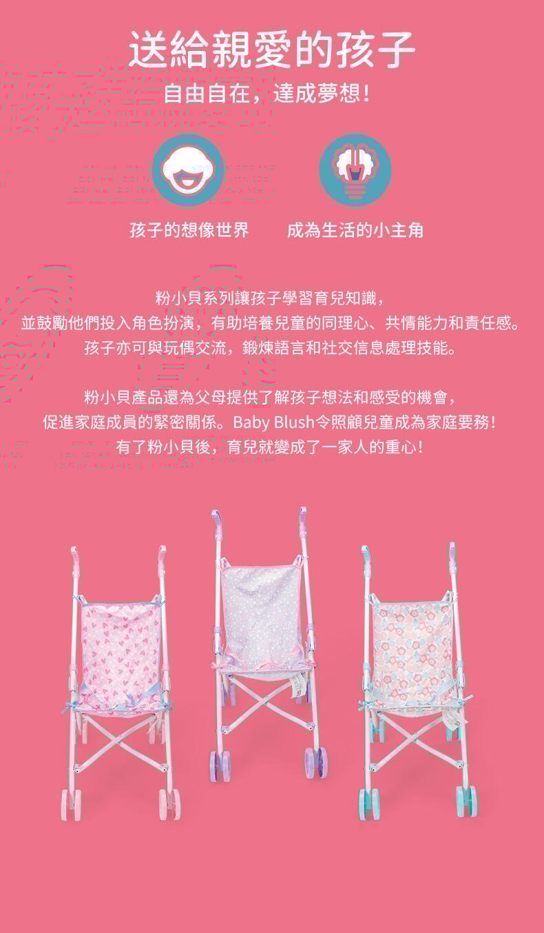 What will we do today? Should we play in the park? Go to the beach and enjoy the sunshine? Or perhaps we can enjoy a walk outside? Now your best friend can come with you, wherever you go, in her very own stroller. The compact, foldable design is perfect for portable play and comfortably fits baby dolls that are 13" - 16”.