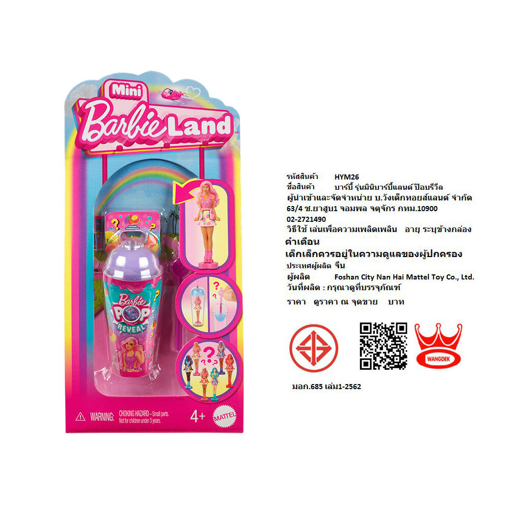 Enter the world of Barbie doll with Mini BarbieLand -- a place to imagine big and Dream in Mini! Mini BarbieLand Pop Reveal dolls deliver hugely cute unboxing and a teeny surprise. Unscrew the lid on the mini drink cup and poke the sensory compound with the straw for squishy fun. Remove the compound to reveal a Barbie mini doll! Which doll will you reveal? Each 1.5-inch doll bends at the waist and stands on a heart-shaped base that fits into Mini BarbieLand playsets (sold separately). Also use the mini drink cup to store the doll. Fans ages 4 years and older will want to collect all these cute dolls to build their own mini world! Each sold separately, subject to availability. Colors and decorations may vary.