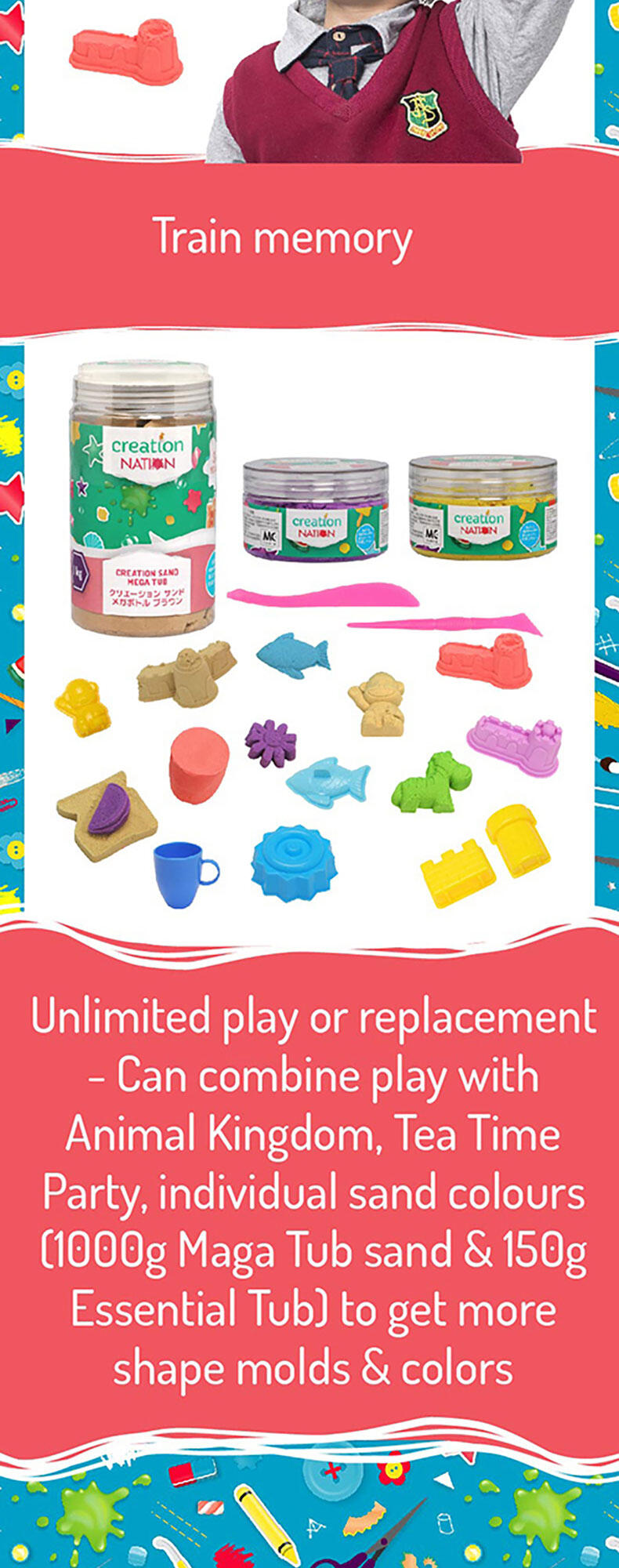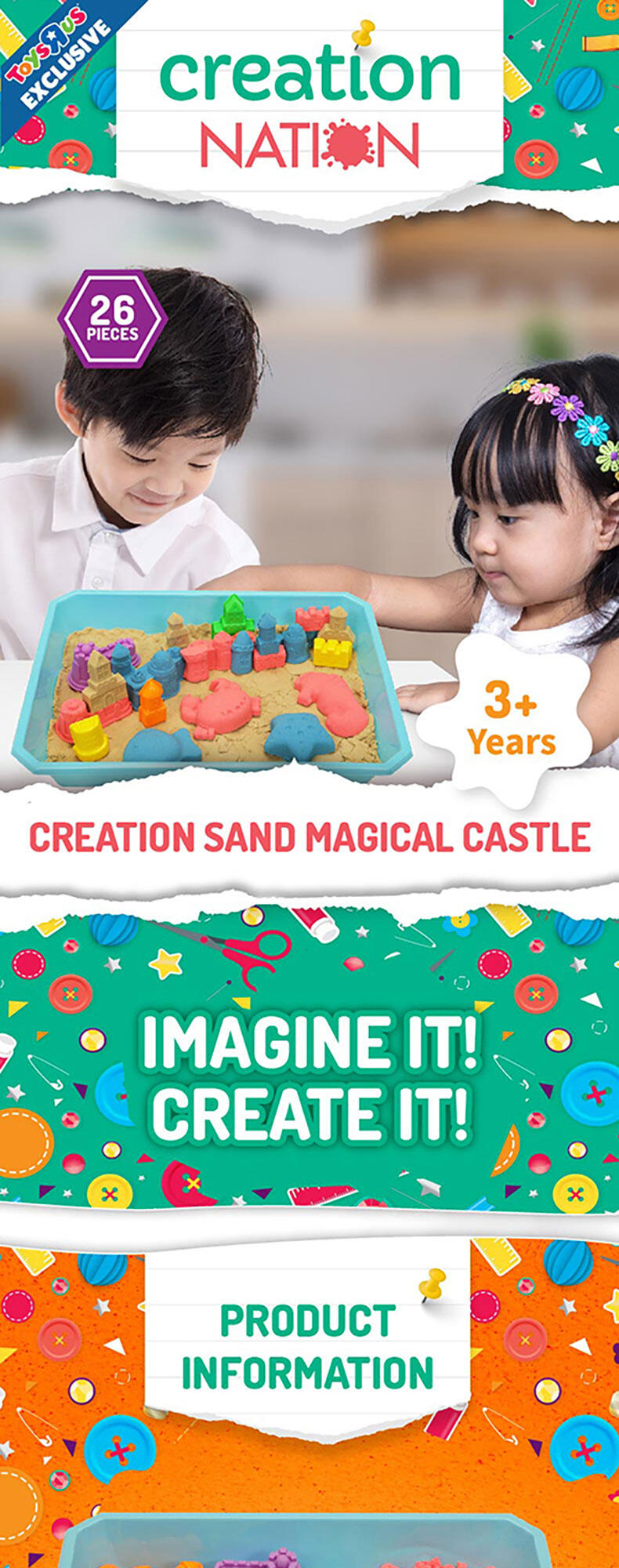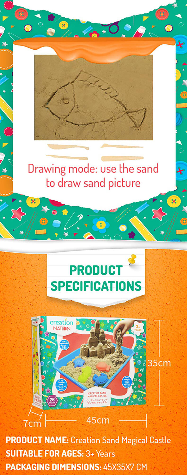 My Creation Sand Castle will be completed soon! This Set unlocks a child’s limitless imagination and encouraging creative play. Young builders enjoy moulding the magnificent pink towers constructed with blue keeps and grey curtain walls with the non-sticky, safe-to-play Sand. They are more than happy to tell you every stories behind their creation!