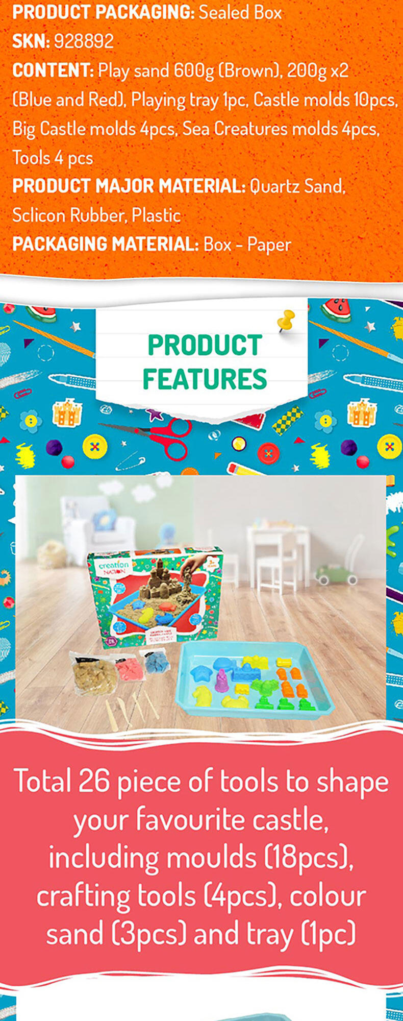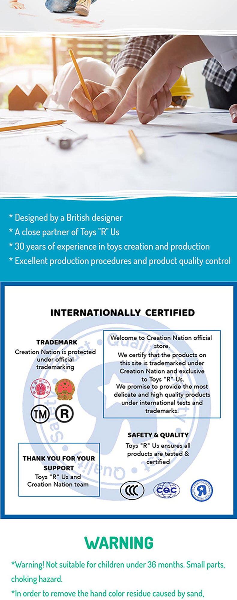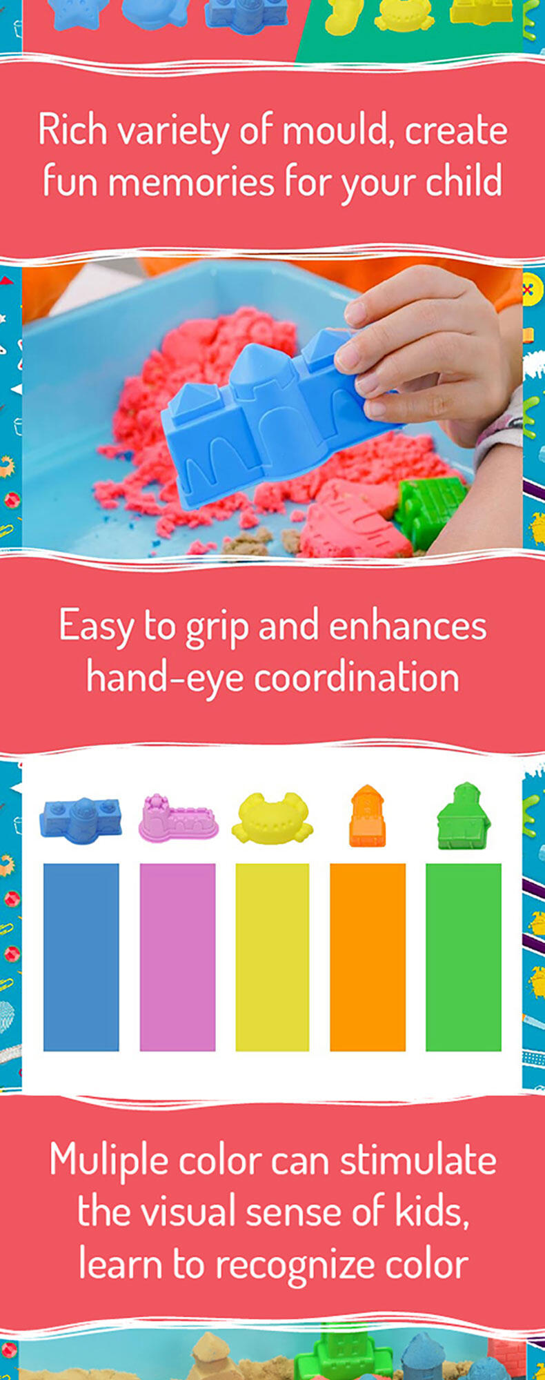 My Creation Sand Castle will be completed soon! This Set unlocks a child’s limitless imagination and encouraging creative play. Young builders enjoy moulding the magnificent pink towers constructed with blue keeps and grey curtain walls with the non-sticky, safe-to-play Sand. They are more than happy to tell you every stories behind their creation!