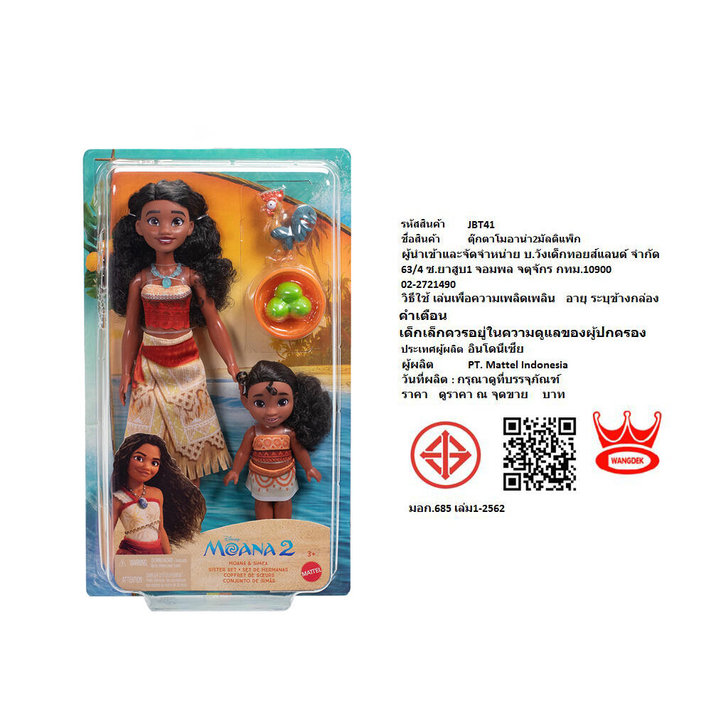 Disney’s Moana 2, the theatrical sequel to the original film, explores the themes of leadership, courage and -- most importantly -- family. Kids will love discovering this and more through play with the Moana and Simea Sister set. Both Moana and Simea dolls are included, along with Heihei, their silly and lovable chicken, and two accessories to help play out the unshakeable bond they share with each other and their land, the island of Motunui. The fashion dolls are both wearing true-to-the-movie outfits and have beautiful, wavy hair.