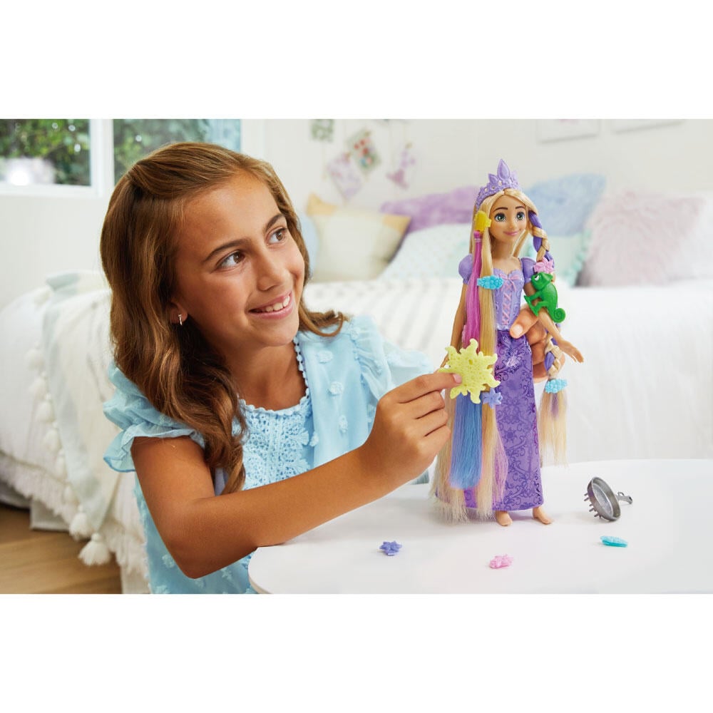 Rapunzel's hair has never been more beautiful than in this magical fashion doll set. Style 10 inches of Rapunzel's hair with 19 pieces, including two color-change hair extensions. Includes a color-change Pascal for additional storytelling play.