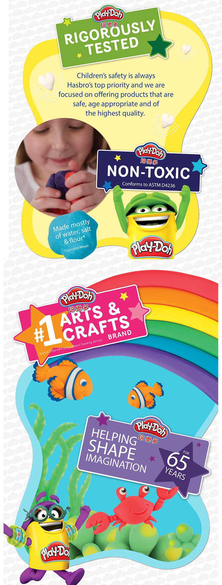 - 5 non-toxic play-doh colors: this peppa pig toy includes 5 cans of modeling compound (contains wheat) with 2 ounces each of teal, red, and pink and 1 ounce each of yellow and brown