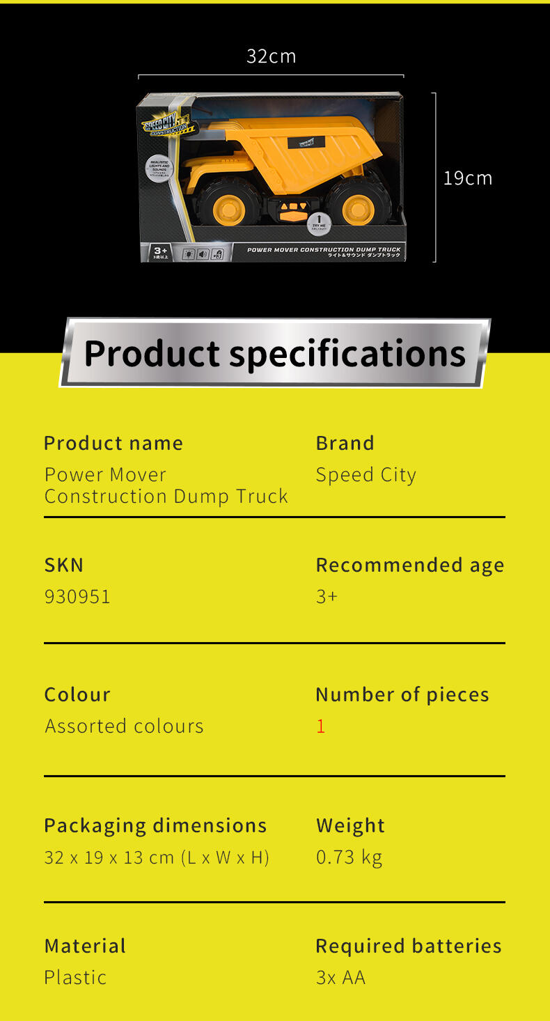 Little construction fans will be able to experience a taste of life on a building site with the Power Mover Dump Truck. This sturdy vehicle features a motorised rear bucket that can be raised and lowered, while the truck moves forward and backward at the press of a button! The free-moving, chunky wheels encourage ‘push-along’ play and the development of essential cognitive and social skills. A special gift for someone you love or a great addition to an existing playset, this truck is sure to inspire hours of highly rewarding and creative play.