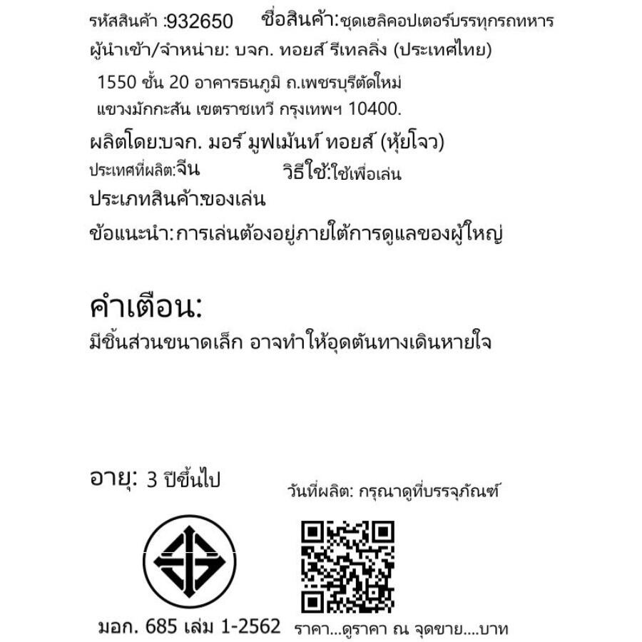 ไม่ว่าการต่อสู้จะอยู่บนบกหรือในทะเล คุณพร้อมสำหรับทุกสิ่งด้วยชุดของเล่นของ Chinook นี้! เรือบรรทุกขนาดใหญ่ลำนี้บรรทุกทั้งรถบักกี้จู่โจมและแพสปีด วางตัวเลขที่รวมอยู่ในห้องนักบินของผู้ให้บริการ ชีนุกมีไฟและเสียงปุ่มกด ใบพัดหมุนได้ และอาวุธที่ถอดออกได้ เรือบรรทุกเครื่องบินและยานพาหนะสามารถหมุนได้อย่างอิสระ – ผลักดันพวกเขาเข้าสู่สนามรบ ประกอบด้วยฟิกเกอร์แอคชั่นที่สามารถโพสท่าได้สองแบบ รวมถึง เฮลิคอปเตอร์ 1 ลำ 1 รถจี๊ป 1 ลำ 2 ฟิกเกอร์และอุปกรณ์เสริม