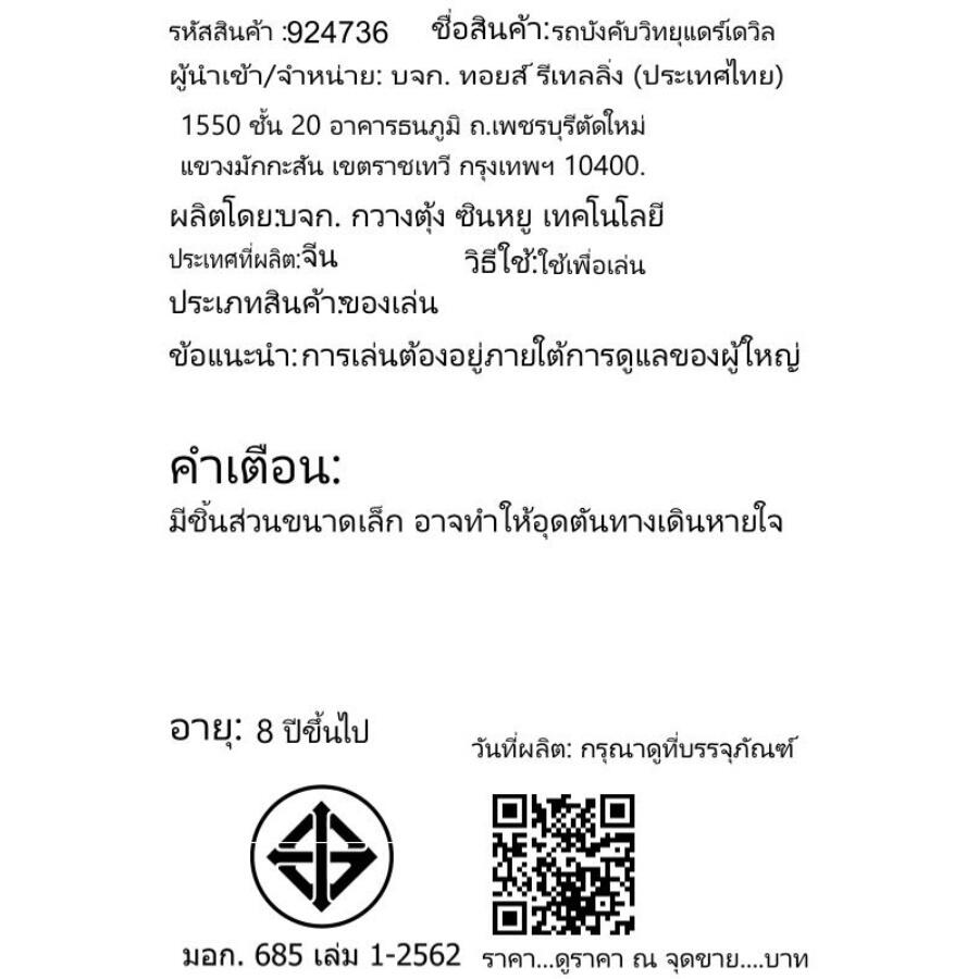 - รีโมทคอนโทรล บังคับระยะ 20 ม.