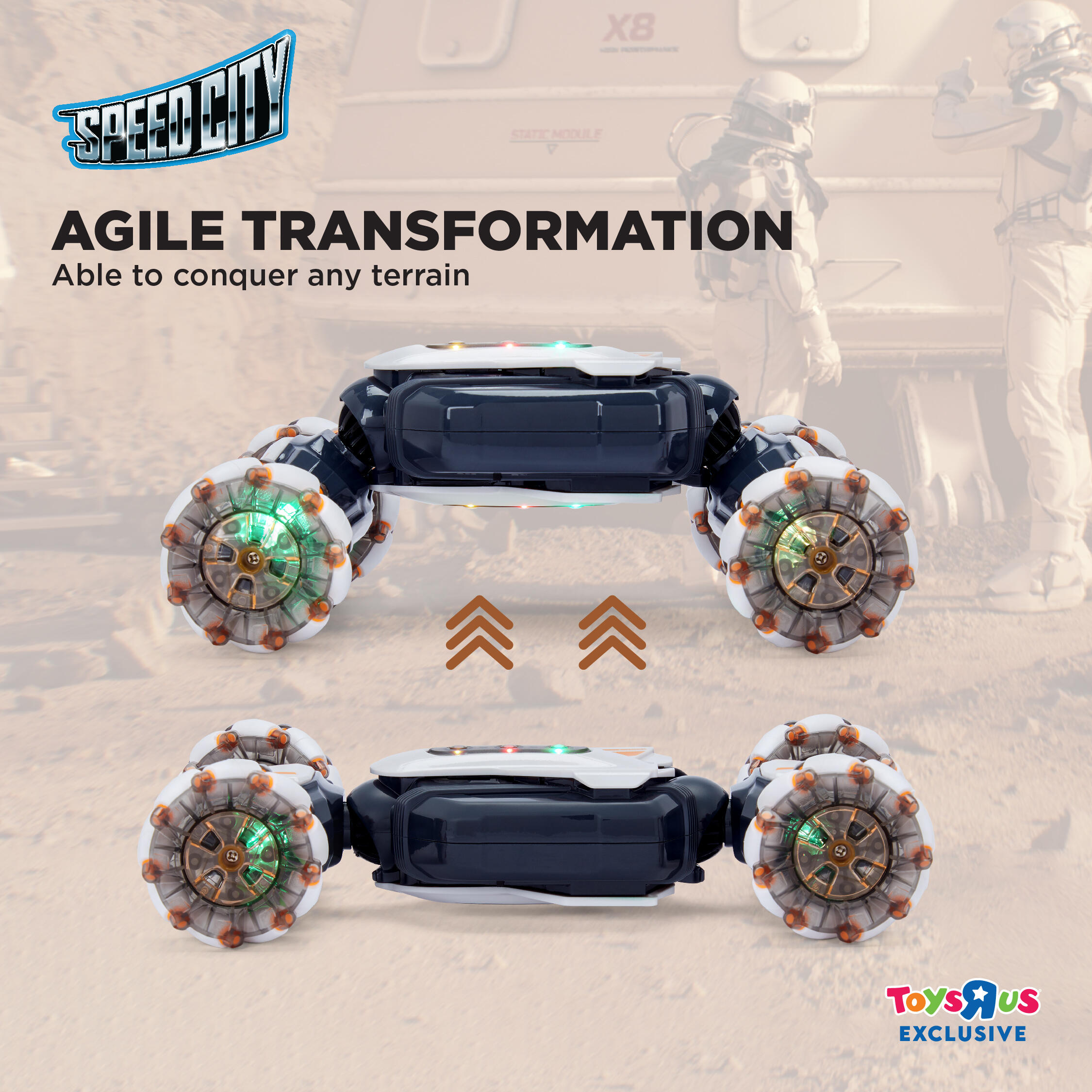 Unleash the fun with Radio-Controlled Stunt Drifter; unlike normal drifter, it drifts sideways and can transform to off-road mode for spectacular stunt tricks! Cool lights & sounds effects options to choose from for more attractiveness!